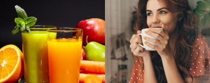 Listen inkluderer juice og kaffe. At vælge den rigtige drik kan virke som en vanskelig opgave / collage af My, foto af depositphotos.com Drikkevarer, som