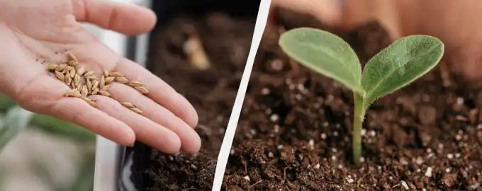 Med den rette fremgangsmåde kan peberfrø begynde at spire inden for den første uge. Dette er den mest almindelige måde at spire frø på / Collage My, foto...