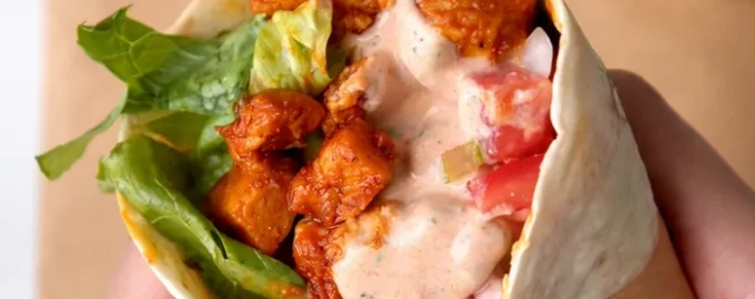 Foto: fra åbne kilder Kyllingerulle med krydret hvidløgsmayonnaisesauce – den perfekte kombination af hurtig tilberedning og restaurantsmag derhjemme