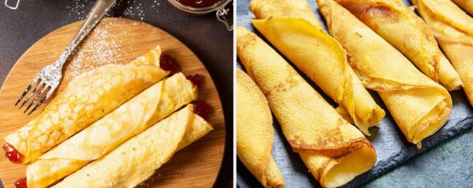 Kongelige pandekager på mælk – opskrift med tredobbelt fyld