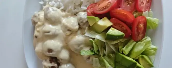 Kødboller tilberedes meget enkelt, men serveres med en smagfuld, cremet sauce, som gør retten saftig og mør.