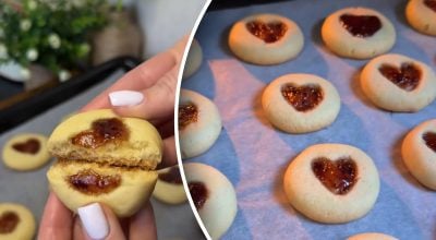 Når dejen er klar, formes små kugler, som placeres på en bageplade. Lav en lille fordybning i hver kugle med en ske eller din tommelfinger. Heri lægges en lille klat syltetøj. Bag kiksene midt i ovnen, indtil de er let gyldne.