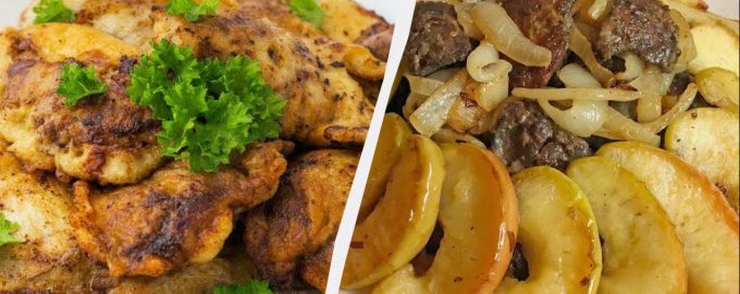 Vend leverstykkerne i mel før de rammer den varme pande. Dette skaber en beskyttende hinde, der holder på fugten. Steg æblerne for sig selv, indtil de er let gyldne, og bland derefter alle komponenter. Muskatnød og kanel er de hemmelige ingredienser, der binder smagen sammen i denne ret.