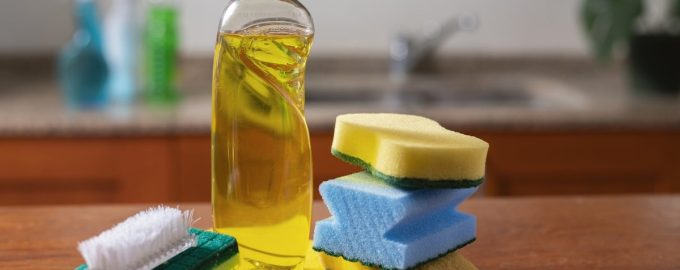 Et lige så effektivt middel til at gøre det porøse tilbehør rent og friskt igen er bordeddike. Produktet klarer perfekt fedt, bakterier og ubehagelige lugte. Før brug fortyndes produktet med vand i forholdet 1:1. Derefter placeres svampen i en beholder med rengøringsvæske i hvor mange timer. Det er bedst at ælte opløsningen om aftenen for at sætte produktet i blød natten over, og om morgenen skylles det med vand.