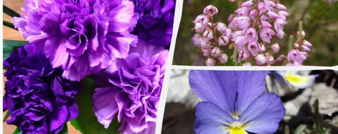 Denne liste omfatter især nelliker, lyng og stedmoderblomster / collage af My, foto af Wikipedia