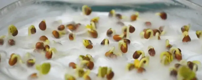 - Hvis du er sikker på frøets kvalitet og kun har brug for at starte svulme- eller hakkeprocessen, er det tilstrækkeligt at bruge almindeligt rent vand. Processen er slut, når frøene stiger mærkbart i volumen.