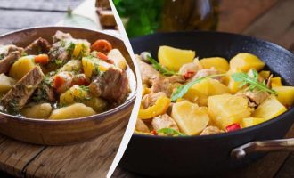 - Vask og skræl løg, gulerødder og kartofler.