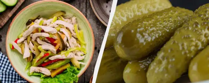 Sådan laver du salat med saltet agurk og kylling