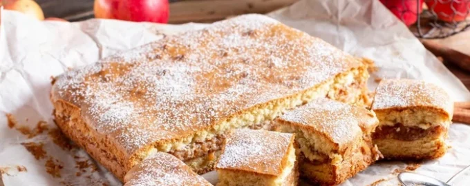 En enkel opskrift på en lækker tærte med æblefyld uden æg, mælk og smør. Dette er en god mulighed for dem, der faster eller følger en sund kost, bagværk bliver blødt, moderat sødt og fugtigt.