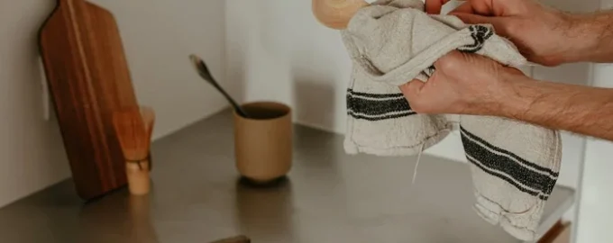 For at holde køkkenhåndklæderne rene og dit køkken sikkert anbefaler eksperter, at du straks fjerner farlige produkter med desinfektionsservietter eller blegemiddel. “Det beskytter ikke kun håndklæderne, men desinficerer også arbejdsfladerne”, understreger Roberts.