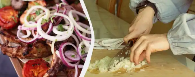 Det andet trick, når vi taler om, hvordan man marinerer løg til salat, burger eller kebab, ligger i skæringsteknikken. Det er bedre at skære grøntsagen i ringe eller halve ringe og altid bruge en skarp kniv. Et stumpt instrument vil knuse løget, hvilket vil få det til at frigive sin saft og kan gøre det bittert.