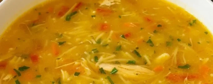 Suppe med kylling, grøntsager og små vermicelli, let, smagfuld og fuld af vitaminer – perfekt til din menu.